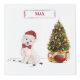 Esta raza de perro, un Westie está sentado al lado de un árbol de Navidad decorado. Esperando las vacaciones, este perro se ve humorístico con un sombrero de santa y corbata de arco rojo. Perfecto regalo para enviar a estos Navidades ya sea de o para un amante de los perros - ¡o sólo porque es gracioso!