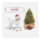 Envía un regalo humorístico de Navidades con este caniche blanco usando un gorra de Navidades rojos y corbata de arco de feriado. Listos para un feliz año nuevo, pasarlo bien con este caniche al lado de un árbol de Navidad.