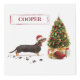 ¡Qué lindo dachshund negro y marrón! Está listo para los Navidades que están al lado del árbol de vacaciones. Ambos están decorados con un sombrero y una corbata de santa y un árbol lleno de adornos. Un mascota perfecto para enviar a los Navidades.
