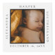 Simple y minimalista foto de bebé y nacimiento Stats mantiene el cubo de la foto. El diseño presenta un diseño simple y mínimo con una foto cuadrada a cada lado del cubo para mostrar sus fotos especiales para bebés. El nombre, la fecha, la hora y las estadísticas de nacimiento del bebé se muestran en un diseño sencillo y moderno alrededor del cubo de la foto. Añada el monograma de su bebé a la parte superior del cubo de la foto.
