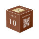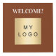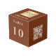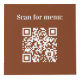 Para restaurante, cafetería, mesas de bar, Personalice y agregue su logotipo de negocio, números de tabla y código QR para su menú. Fondo color tierra marrón, texto blanco.