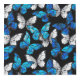Mariposas realistas, azules y blancas, sin fisuras en el fondo negro.