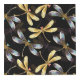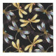 Patrón sin foco con oro, joyas, libélulas brillantes con las detalladas alas brillantes sobre fondo negro. Dragonfly de oro.