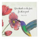 Un colibrí se alimenta de una flor cosmos roja. Esta imagen acuarela ofrece alegría y paz mientras le haces saber a alguien que estás pensando en ellos y agradeciendo a Dios por ellos.