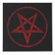 Pentagrama rojo, invertido, texturado en círculo, sobre fondo negro. Símbolo oculto. 666