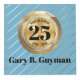 Su esquema de colores elegido en este cubo de visualización de aniversario de hito de empleado que incluye un emblema de medalla de oro falso con rayas, personalizado con el nombre de su empleado, número de años y otro texto, más el logotipo de su empresa en la parte superior.