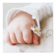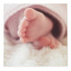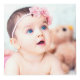 Cubo de fotos con espacio para cuatro fotos, con la inicial en rosa de su bebé dentro de una simple guirnalda.