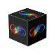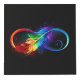 Símbolo de infinito dibujado artísticamente con una hermosa pluma arco iris sobre fondo blanco. Estilo tatuaje.