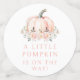 Elegante mesita de ducha de bebé con temática de "calabaza pequeña" de otoño, confeti con calabaza naranja adornada con delicadas flores. Perfecto para la celebración de la ducha de bebé en otoño o Halloween.