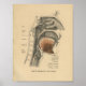 Impresión de anatomía de 1888 en alemán. Ilustracion anatómico humano vintage de la Mano Atlas der Anatomie de Henke. Sección transversal del cuello y cráneo que muestra los senos. Medianschnitt des phayrnx