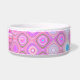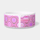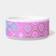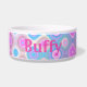 Comida de perro/cuenco de cerámica blancos del agua, con los gráficos abstractos hechos en rosado, azul, aguamarina y verde. Personalice el texto rosado intrépido para su mascota o como gran idea para un regalo para cualquier dueño del mascota.