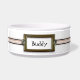 Plato elegante de la comida de perro, con los gráficos bonitos de un rosa, de un negro, y de una cinta del moreno, alrededor del plato, y de una placa de identificación de mirada metalizado, en el centro para el su nombre de mascota. El texto de encargo negro permite que usted modifique para requisitos particulares con el su nombre de mascota, porque un cuenco personalizado su perro puede ser orgulloso de. Hace una gran idea para un regalo.