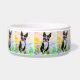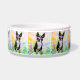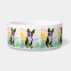 cuenco colorido del mascota con las gafas de sol que llevan del terrier fresco de Boston. Arte de Amanda Basham