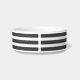 ¡Apetito del hueso! El cuenco del mascota del hueso del oro tiene rayas blancos y negros del ónix clásico y en el centro un hueso metálico del oro. Este cuenco de cerámica hermoso viene en dos tamaños y tiene muchas diversas rayas coloreadas de moda a elegir en de mi tienda. Los detalles metálicos del oro se simulan en las ilustraciones.