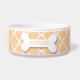 Este cuenco de cerámica de la comida de perro tiene un melocotón elegante y un modelo blanco en el fondo. En el centro, usted puede modificar fácilmente el nombre para requisitos particulares de su perrito escrito en melocotón en un hueso.