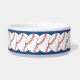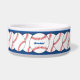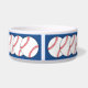Características patrióticas de este cuenco del mascota rojas y béisboles blancos en un fondo azul para un mascota especial de la fan de deportes. Modifique fácilmente el nombre para requisitos particulares o apenas suprímalo.