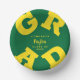 GRAD en negrita con letras amarillas alrededor de los bordes de estos tazones de papel de graduación de fondo verde personalizados para tu graduación - perfecto para servir aperitivos, ensaladas, postres y más. COINCIDIENDO elementos y más combinaciones de colores prehechas en nuestra tienda.