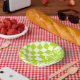 Cuencos De Papel Cheques y muelles en verde limón y blanco