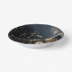 Stylish New Year's Eve party paper bowls feature a champagne glass, clocks, confetti and fireworks on a midnight blue background with Happy New Year and the year in chic lettering. MATCHING items in our collection.