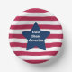 Juego de bolas de papel impreso con Dios Bendiga a los Estados Unidos, letras rojas y azules y diseño de arte de rayas por TheFabricSeal en Zazzle.com #ZazzleMade TheFabricSeal ©️ original. Tiras horizontales de alfileres rojos y blancos con una gran estrella azul y la frase con letras blancas en el interior. Perfecto para mezclar y emparejar la bandera de franjas y estrellas patrióticas americanas, orgullo nacional y cuarto lugar. Celebración de julio del nacimiento de nuestro hermoso país con diseños temáticos y productos juntos. Ideal para complementar la moda informal, decoración interior, celebraciones, entretenimiento, deportes, vacaciones y más. Cada conjunto de ocho placas de papel está impreso en papel duradero. Son perfectos para servir pasteles, aperitivos o ensaladas. Solicite estos productos con nuestras servilletas de papel y platos para un conjunto completo de vajilla de fiesta que sus huéspedes apreciarán.