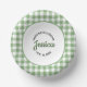 Pretty green gingham plaid gender neutral baby shower paper bowls, change the text yourself when you order