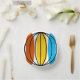 Diseño abstracto con un toque retro de mediados de siglo, con una esfera reseñada en negro y óvalos en azul brillante, amarillo dorado y naranja quemado sobre un fondo blanco. Un diseño de personalizable para que puedas personalizar con tu propio texto, imágenes e ideas. Imagen original de arte digital creada por Jess Perry en QuirkyChic Retro.