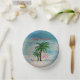 Traiga a algunos Navidades a alegrarse con mi divertido flamingo tropical y el arte de la palmera en el fondo de la playa de aguas claras. Placas de papel fiesta Flamingo.