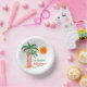 ¡Celebremos a los Navidades en julio con una barbacoa o fiesta! Invite a la familia y amigos a la celebración temática de sus Navidades y decorarla con estas tazones de papel de estilo isleño con palmeras dibujadas a mano decoradas con luces. Personalizable fácilmente con tu nombre. Porque creamos nuestra obra de arte no encontrarás esta imagen exacta de otros diseñadores. Acuarela original © Michele Davies.