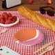 Cuencos De Papel Ondas simples 2 en rosa, Naranja y crema