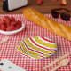 Decoración retro de inspiración de mediados de siglo con un sabor español con estribos de oro, rojo y blanco y negras. Creado para coordinar con la gama de souvenirs españoles de accesorios para el hogar y suministros de fiesta.