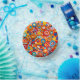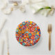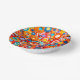 An abstract design composed of colorful circular shapes covers this paper bowl.