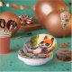 El Panda Rojo recorre su patineta por la calle. Usando tonalidades frescas, disfrutando del paseo. Diseño divertido para traer una sonrisa a tu cara... una idea única de la fiesta de cumpleaños.