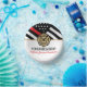 Este diseño cuenta con una bandera de bomberos con rayas blancas y negras y una delgada franja roja. "Felicitaciones" y el texto de la insignia del bombero se sienta por encima del nombre del bombero, teniente o jefe que se gradúa o se retira. ¡Celebren con estilo!