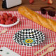 Estos tazones retro de papel de cumpleaños "Let's Fiesta" presentan un divertido diseño vintage con un tablero de ajedrez audaz, flores de margarita retro y detalles de confeti coloridos. Perfecto para las fiestas de cumpleaños de los niños, añaden un nostálgico toque de color y encanto a cualquier celebración. Estos bolos son parte de una colección de cumpleaños con artículos de coordinación disponibles.