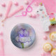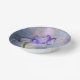 Estos tazones de papel cuentan con un Iris morado y blanco con un fondo de pintura.