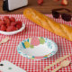 Un plato con encanto, con motivos florales y una deliciosa tarta, perfecto para añadir un toque a tu colección de platos de papel.
