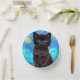 Bolas de papel con un gato negro en la pintura Starry Night de Van Gogh! Este gatito de ojos azules mira adorablemente desde un fondo de remolinos azules y una brillante luna amarilla. ¡Un regalo fantástico para los amantes del gato y para los coleccionistas holandeses de arte!