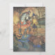 Ilustración antigua clásica de un cuento de hadas para niños y libro de rimas infantiles titulado "Un Dragón Enorme que Yace junto al Borde del Agua" por Jean de Bosschere, 1918. Este diseño presenta a un dragón con un cuerno en la nariz y a un príncipe real o caballero con armadura brillante con su caballo. Han encontrado al peligroso dragón en el bosque junto al río.