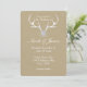 Cuernecillos de plata blanca y invitaciones de boda marrones