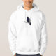 Cuervo en la sudadera con capucha del cuervo. Cuervo negro hermoso con puntos culminantes azules.