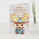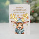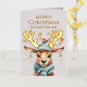 Se propaga la alegría de las vacaciones con esta extravagante tarjeta de Relieve metalizado de Navidades de acuarela plegada con reno y adorable que presenta un reno lindo y alegre que usa una bufanda verde pastel y un gorra de invierno. Personalizar el texto para crear un saludo personalizado.