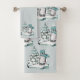 Un adorable acuerdo acuarela de un pingüino con una beanie caliente y una bufanda en una nevada plancha ártica con un árbol de Navidad cubierto de nieve. Este juego de toallas de baño es un regalo perfecto para los niños de esta estancia o para añadir a sus navidades accesorios de baño.