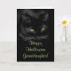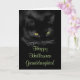 ¡Una manera divertida de desear a tu nieta Feliz Halloween! Este gato negro con tarjeta de ojos verdes tiene un lindo poema de halloween en el interior.