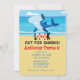 ¡Cuidado con los tiburones en este fiesta de piscina! Esta invitación tiene un fondo de playa. Hay un tiburón martillo saliendo del océano hacia la playa. La palabra "look" tiene dos tubos rojos y blancos como O. Personalice esta invitación con su información fiesta en fuentes brillantes y divertidas. Consulte los demás diseños y productos de esta colección en nuestra tienda.