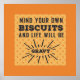 "Cuidado con tus propias galletas y la vida será salsa" - Un poco retro, un poco sureño y definitivamente divertido! Fondo de punto polka naranja con grandes bordes sólidos y superposición de texto negro.