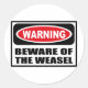 Atención al Pegatina WEASEL, puedes personalizar en www.WarningSignShirts.com y presenta una señal de advertencia roja y negra y BEWARE OF THE WEASEL en negritas letras negras para advertir al mundo. También puede personalizar a su propio Pegatina de signos de advertencia con el texto que desee.