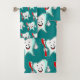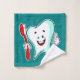 Toallas con un ilustracion de estilo personalizado con un gran diente blanco sonriendo alegremente sosteniendo un cepillo de dientes rojo y dando la señal de los pulgares hacia arriba.