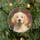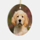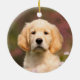 Perro de Golden Retriever en un prado de flores cucú. Él es un Goldie tan lindo, me divertí mucho tomándole fotos. Los Golden Retrievers son perros muy inteligentes y leales. Este adorno navideño redondo de cerámica es una idea de regalo para los amantes del perro. El doggy de ojos cachorros fue fotografiado por Katho Menden