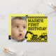 Sorprenda a sus huéspedes con esta divertida invitación a la fiesta de cumpleaños con un toque de precaución con la tipografía moderna. Reemplace fácilmente los detalles del evento y la foto del bebé en esta plantilla y hágalo una invitación única.