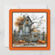 Beware & Boo - La obsesionada tarjeta de Halloween de Gatehouse Una casa en ruinas se asoma detrás de una puerta marcada con ominosos carteles ("¡NO ENTRAR!" y "¡OH!") mientras fantasmas se desplazan por el aire y murciélagos se deslizan por el aire. Las brillantes lámparas jack-o’ sonríen desde las sombras, sus expresiones talladas que van desde juguetonas hasta amenazadoras. Encima de la casa, exclamaciones audaces como "¡EEK!" y "¡OH!" hacen eco del susto festivo, mientras que "¡OJALÁ!" delimita la escena en una advertencia audaz y espectral. La composición mezcla fantasmagórico capricho con un encantador encanto, capturando el malicioso espíritu de Halloween en un momento de espeluznante invitación.